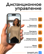 Основной замок: Электронный СМАРТ-замок, сканер отпечатков пальцев, управление через приложение, видеоглазок.